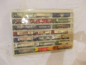 Mam do sprzedania kolekcję – 21 szt. modeli aut ciężarowych , ciągników siodłowych z naczepami . Stan jak na zdjęciach – kolekcjonerski . Wymiar gabloty plastikowej 64 x 44 , średnia długość modelu 20 cm. Rodaj materiału to metal i tworzywo . Sprzedaje tylko jako komplet – nie na sztuki . Koszt transportu 30 zł. , lub odbiór osobisty . Cena 420 zł