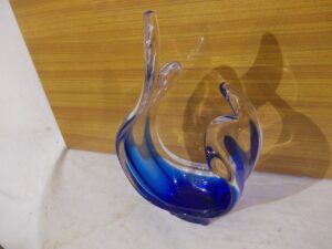 Mam do sprzedania starą misę paterę Murano z lat 60 . Stan jak na zdjęciach – nie uszkodzona , idealna , wysokość 34 , szerokość 20 cm. Koszt transportu 30 zł. , lub odbiór osobisty . Cena 400 zł.