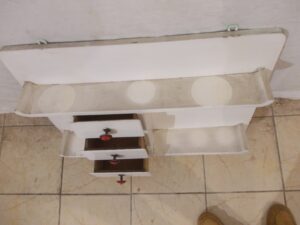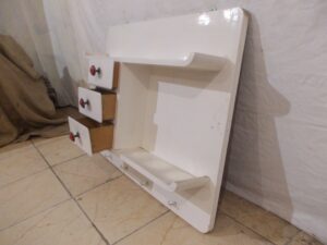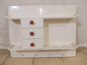 Mam do sprzedania starą wiszącą półkę z 3 szufladkami . Stan jak na zdjęciach – drewniana bez insektów , do oszlifowania i pomalowania . Wymiary 73 x 56,5 cm. Koszt transportu 40 zł. , lub odbiór osobisty . Cena 130 zł.