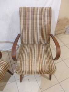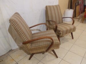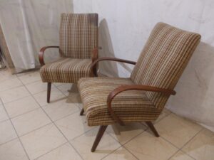 Mam do sprzedania stare fotele z czasów PRL pr. Czechosłowackiej TON . Stan jak na zdjęciach – tapicerka do wymiany lub naprawy w jednym fotelu , konstrukcja nie popękana , zdrowe bez insektów , kompletne – do odświeżenia . Cena za 1 szt. 270 zł. . Koszt transportu 1 szt. 70 zł.. , lub odbiór osobisty ,
