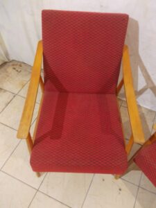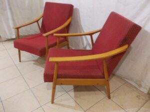 Mam do sprzedania stare fotele z czasów PRL pr. Czechosłowackiej . Stan jak na zdjęciach – tapicerka tylko do wyprania , konstrukcja zdrowa , kompletne – do odświeżenia . Cena za 1 szt. 270 zł. . Koszt transportu 1 szt. 70 zł.. , lub odbiór osobisty , w razie pytań proszę dzwonić .