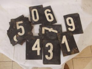 Mam do sprzedania stare industrialne numerki metalowe . Stan jak na zdjęciach – ręcznie malowane , wymiar 14,5 x 10 cm. Cena za 1 szt. 10 zł. Koszt transportu dowolnej ilości 20 zł. , lub odbiór osobisty .
