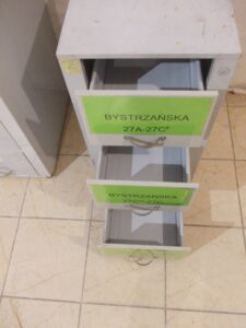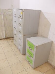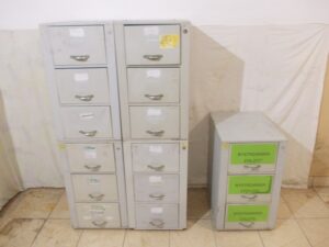 Stare industrialne szafki metalowe kartotekowe modułowe