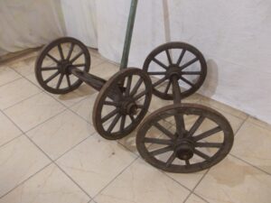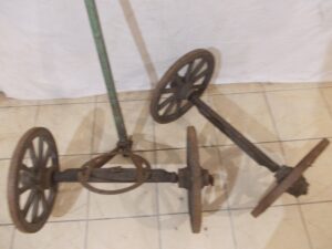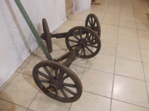 Mam do sprzedania osie z dyszlem i koła z zabytkowego wózka do ogrodu . Stan jak na zdjęciach – bez insektów burt , średnica koła 40 cm. Sprzedaje tylko jako komplet za 350 zł. Transport do uzgodnienia , lub odbiór osobisty .