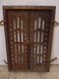 Zabytkowe przedwojenne stalowe drzwiczki z pieca kaflowego 63 x 43 cm.